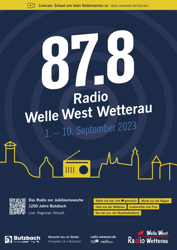 Zum 25. Mal geht Radio WeWeWe in diesem Jahr auf Sendung - ein Jubiläum also. Und das passt wie die Faust aufs Auge - denn auch in Butzbach wird Jubiläum gefeiert! Vor 1.250 Jahren wurde Butzbach erstmals urkundlich erwähnt - die Stadt feiert mit einer Festwoche vom 4.-10. September. Und…
