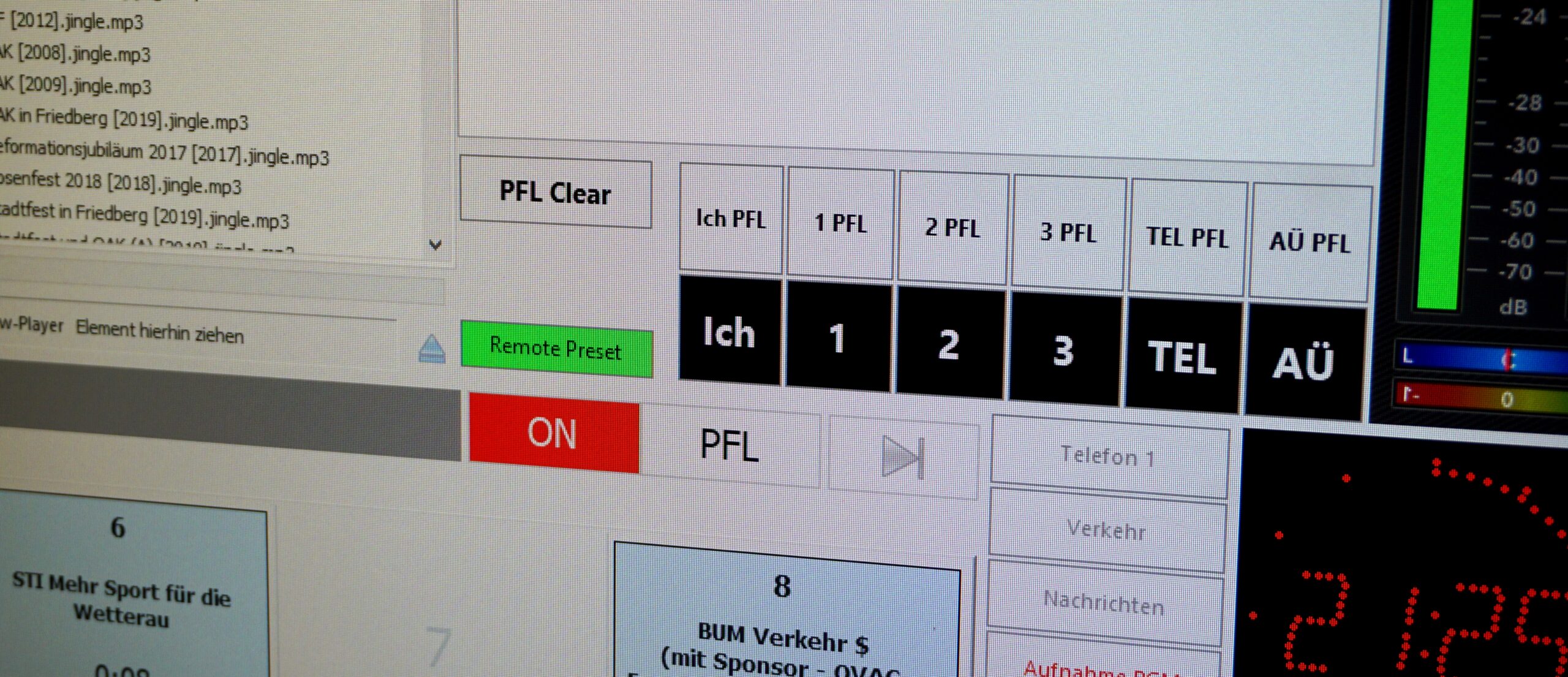 Du bist die Chefin oder der Chef im Studio, und man hört Dich in der Wetterau live im Radio – Deine Themen und Deine Musik in Deiner eigenen Sendung. Du begleitest unsere Hörerinnen und Hörer vom Aufstehen übers Mittagessen bis in die Nacht: Morgens entspannt im Frühstücksradio, vormittags vielleicht mit Studiogästen, mittags live aus dem Kochstudio, nachmittags über alles, was die Wetterau interessiert und abends mit Musikspecials im “Lauschangriff”.